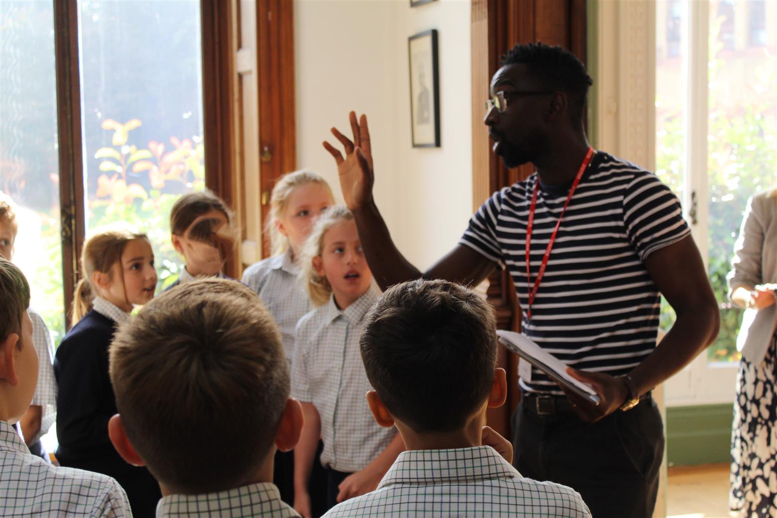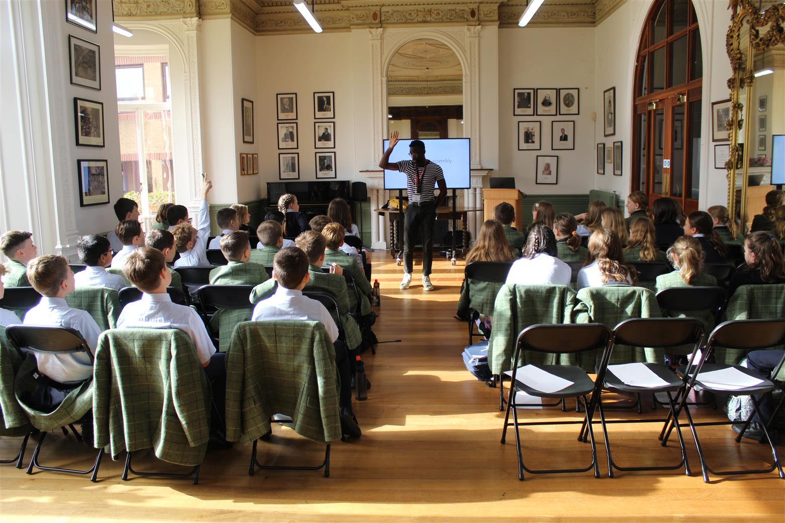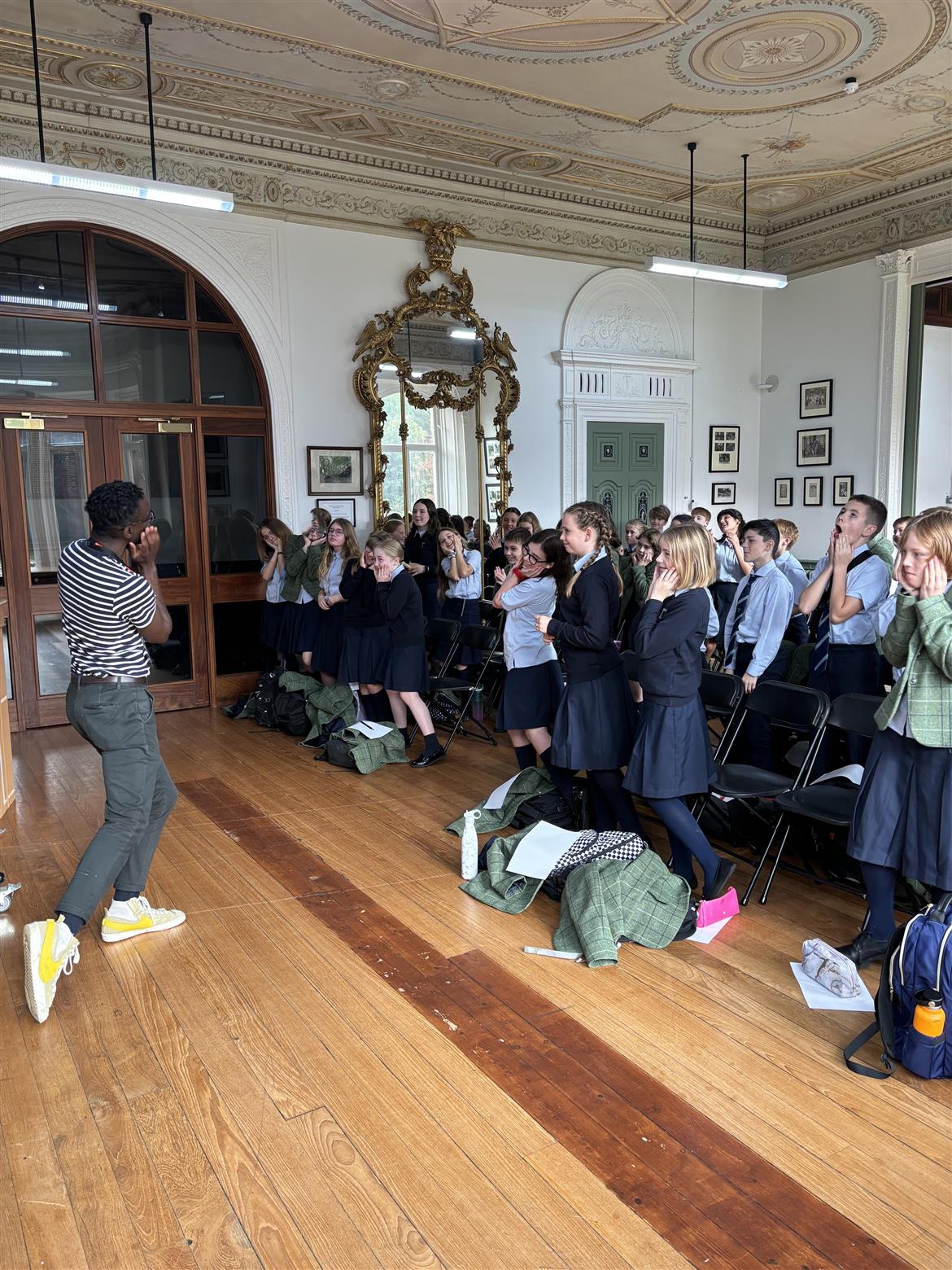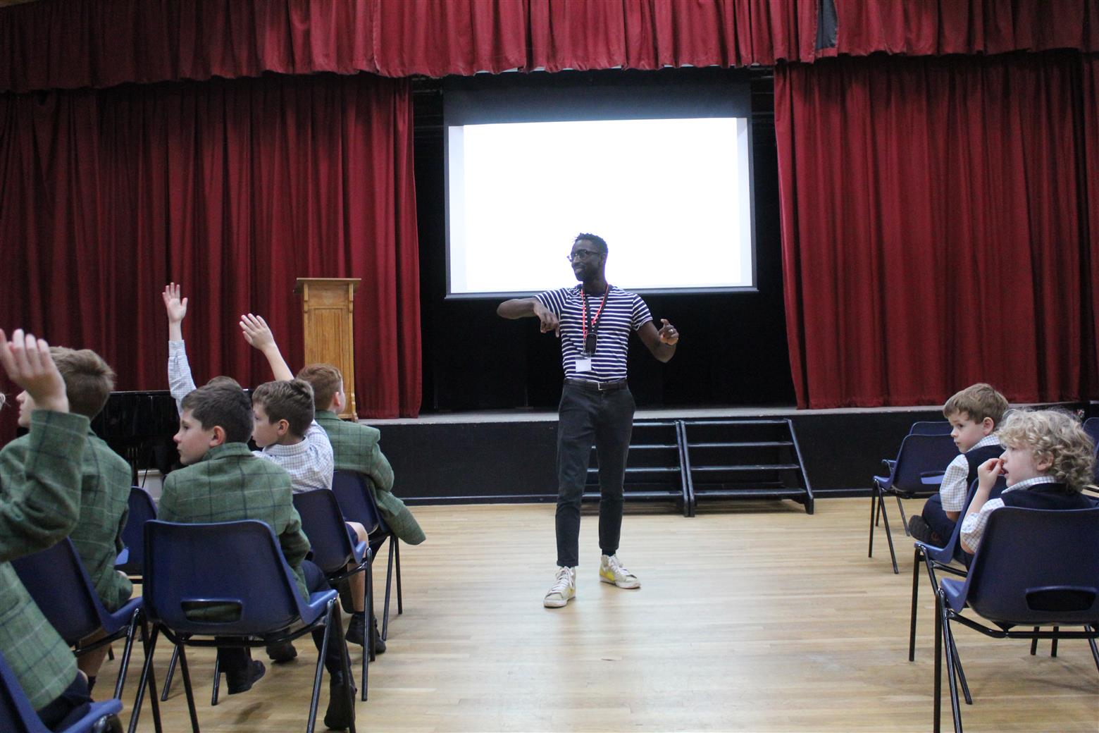 Jeffrey's visit started with a tour of the Senior School with A Level English Literature students, Phoebe and Millie who enjoyed asking him lots of questions. He then presented at both Senior and Prep assemblies followed by two workshops for Year 7 and Years 5 and 6.